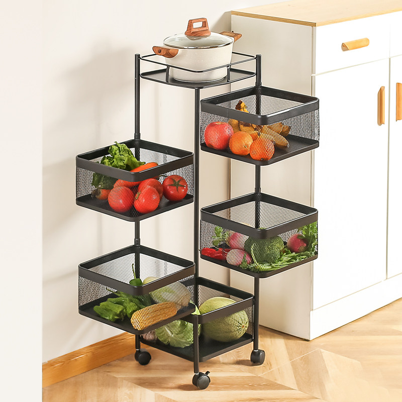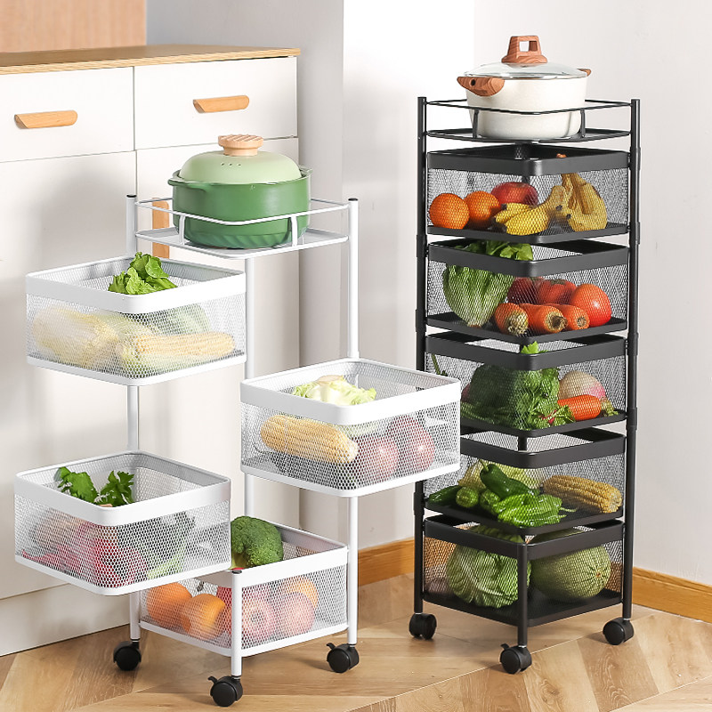 Kawashimaya kitchen trolley shelf floor multi-layer put vegetables mobile rotary vegetable basket snack storage rack