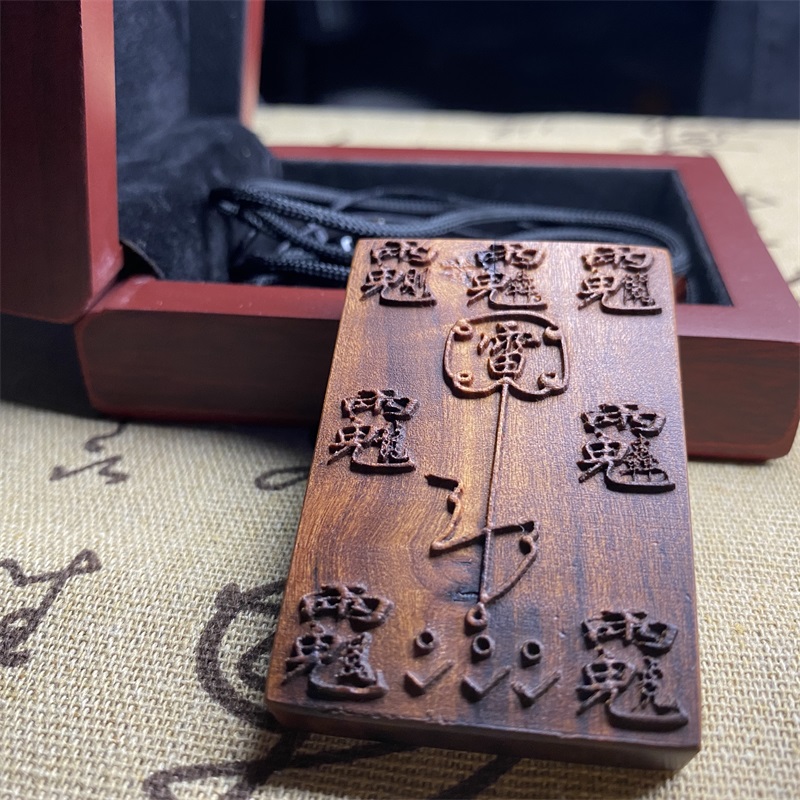 Lagerstroemia taboo wish by natural lightning strike wooden handle piece jujube wood pendant pendant thunder pattern wood carving lightning strike jujube wood safety sign