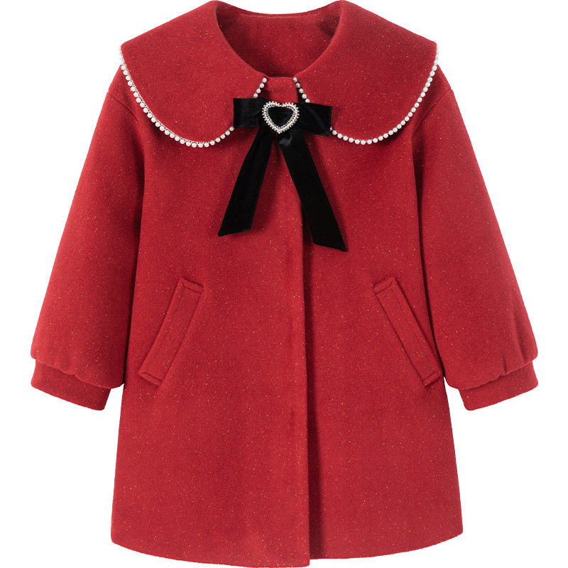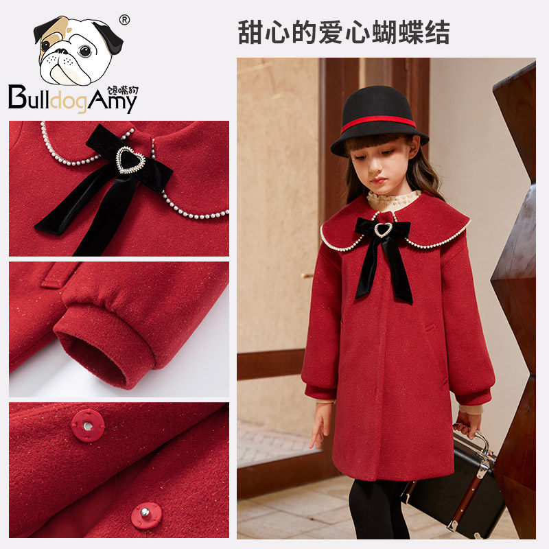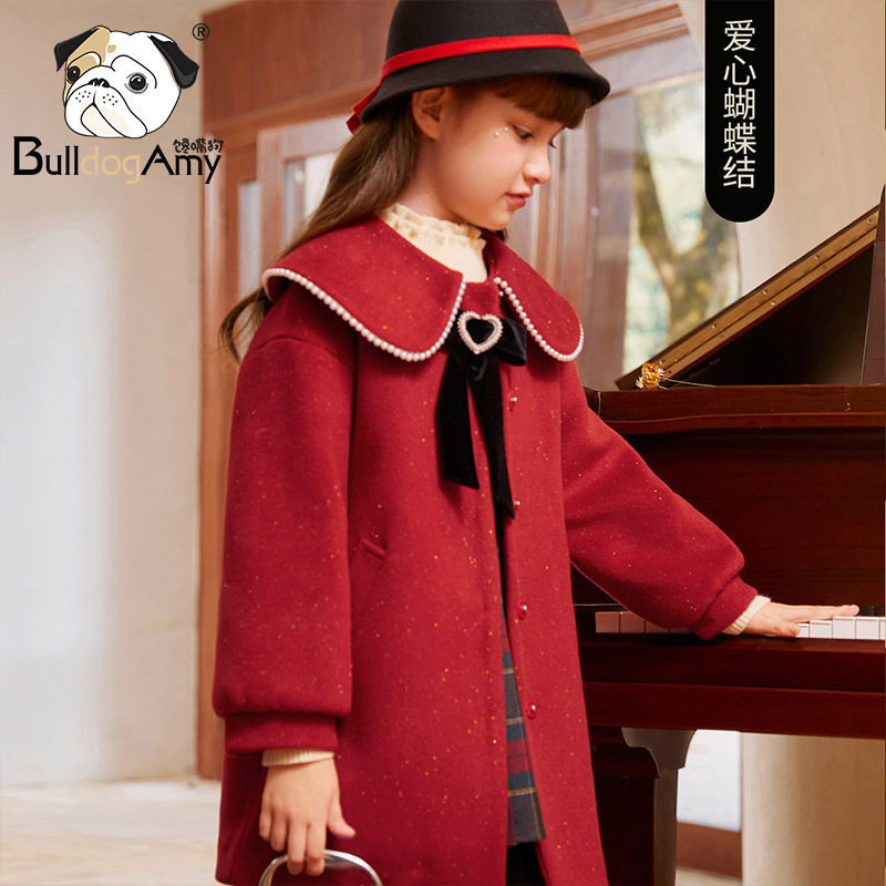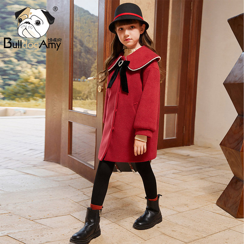 Girls wool coat 2021 winter new style foreign atmosphere big lapels in the big children single-breasted mid-length tweed coat