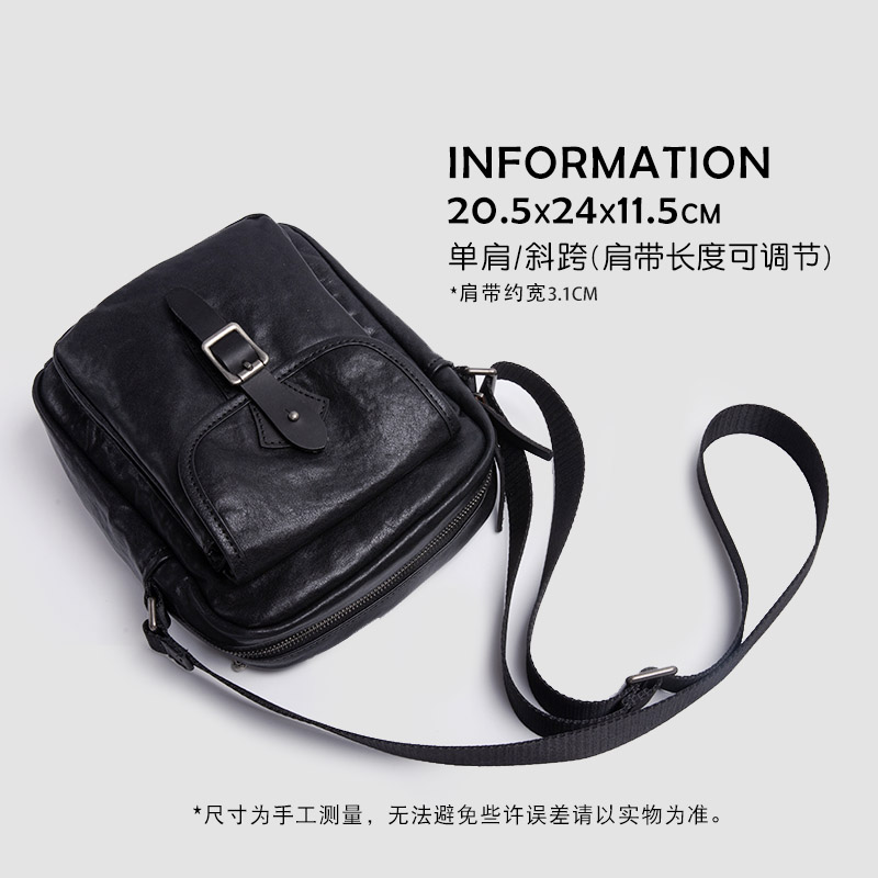 Blue leather Men's bag genuine leather single shoulder Baotou layer Bull Leather Skew Satchel Men Casual Fashion Day Series Flip small satchel