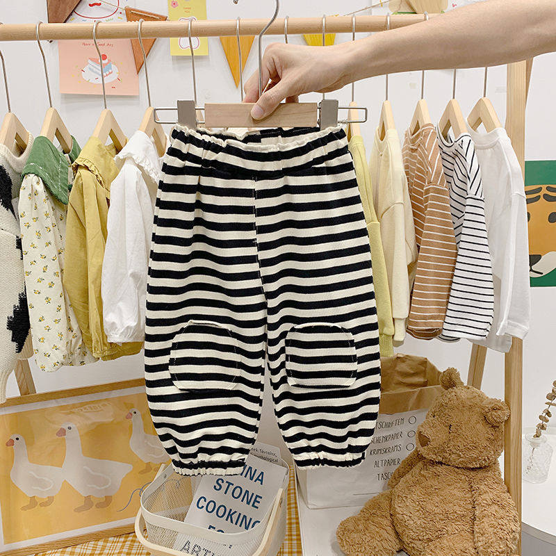 Children's trousers 2021 new Korean children's clothes boys and girls striped pants baby loose casual pants tide