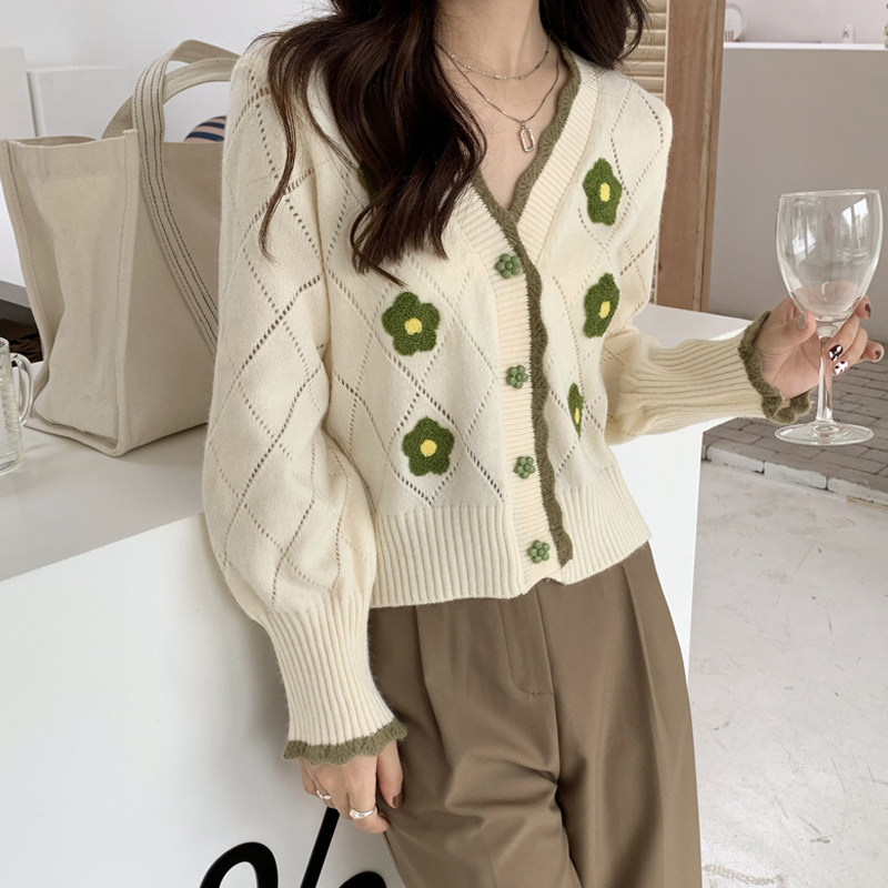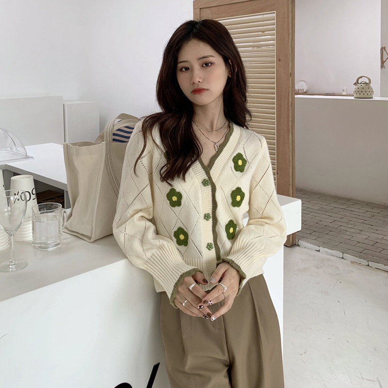 Short sweaters women's clothing jacket design sensation small crowdblouses Early spring 2022 new Korean tether gentle knit cardigan