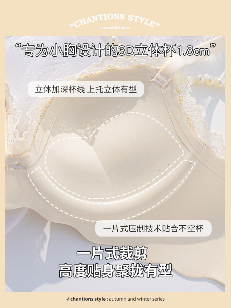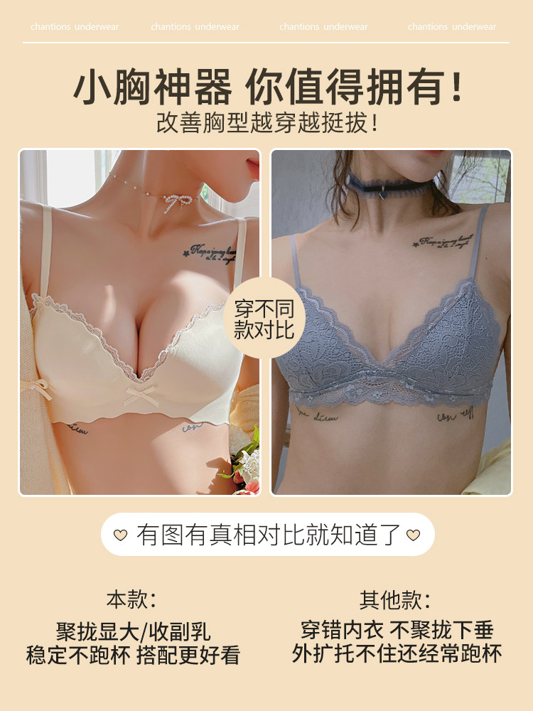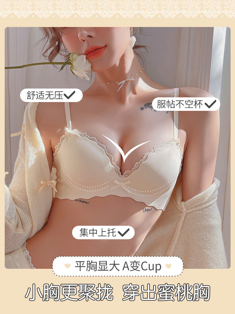 Brand seamless comfortable bra set without steel ring to receive auxiliary breasts thin section small breasts gather up support underwear women thickening