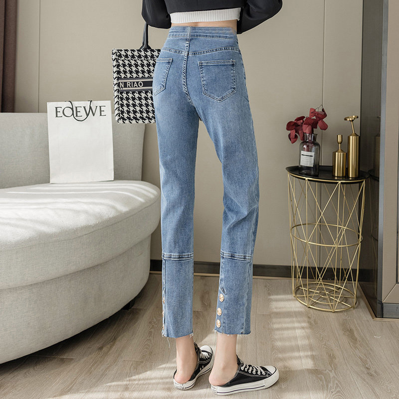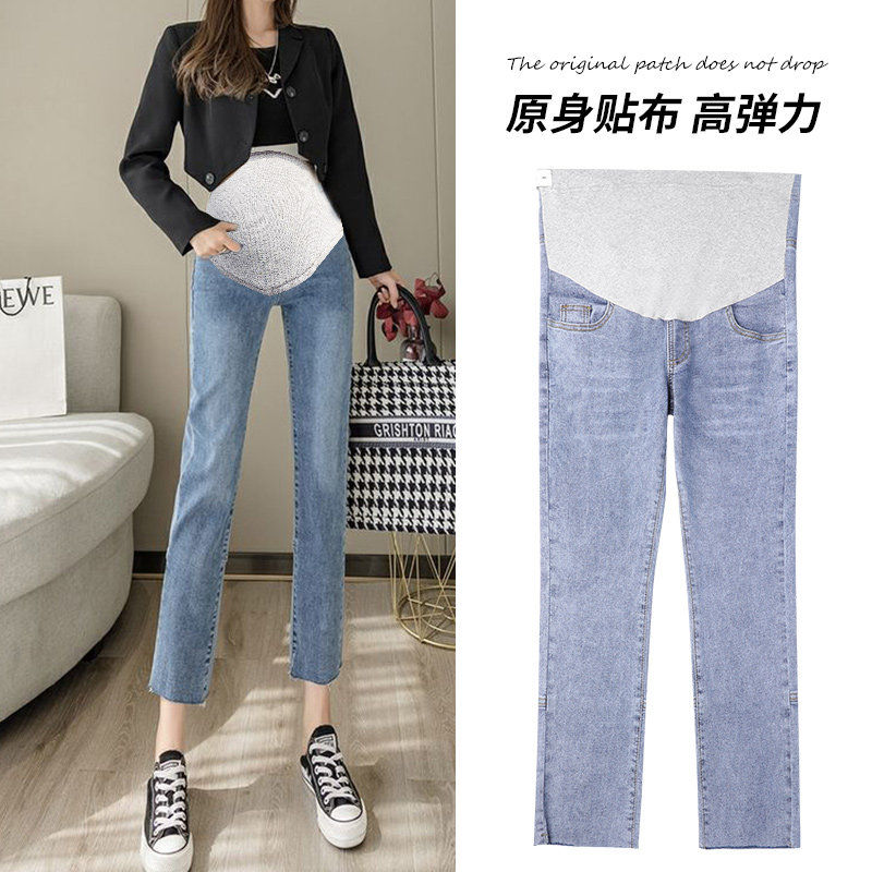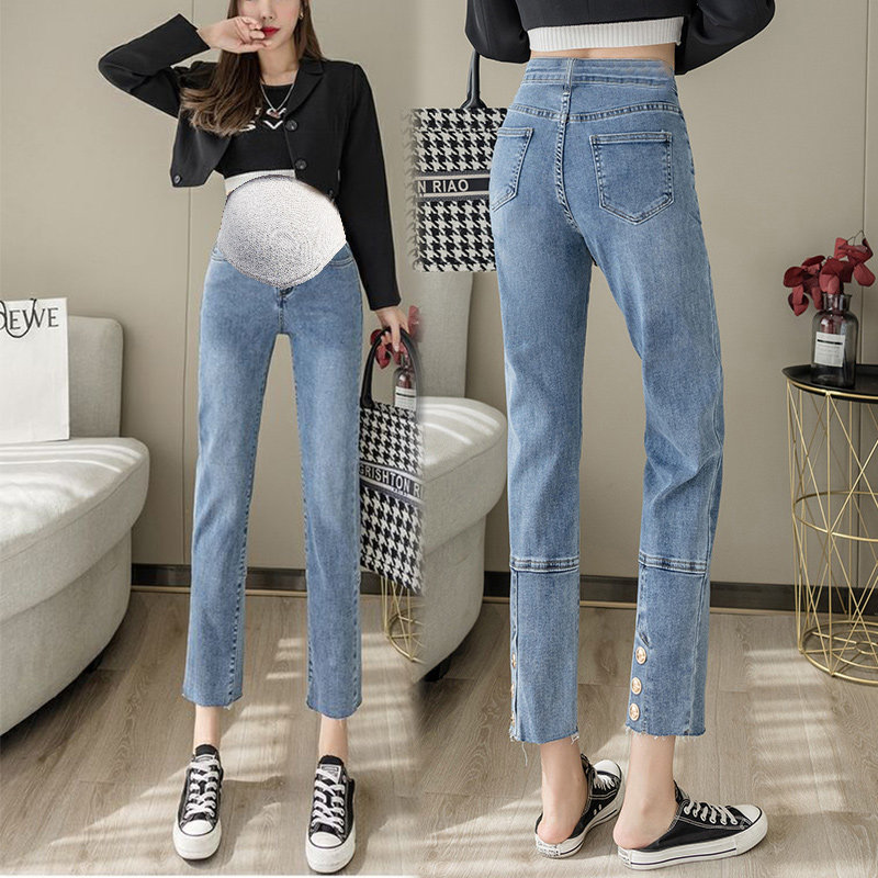 Pregnant Woman Jeans Spring Autumn Outwear Net Red Fashion High Waist Care Pregnant Woman Pants Elastic Personality Nails SMOKE PIPE PANTS