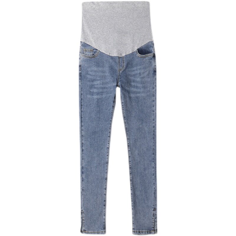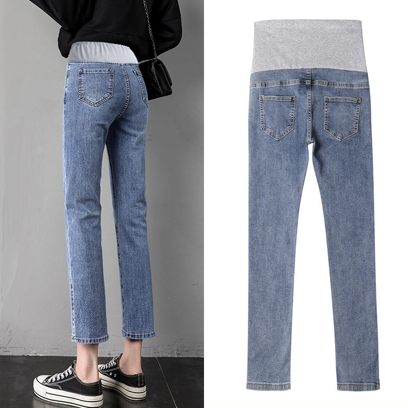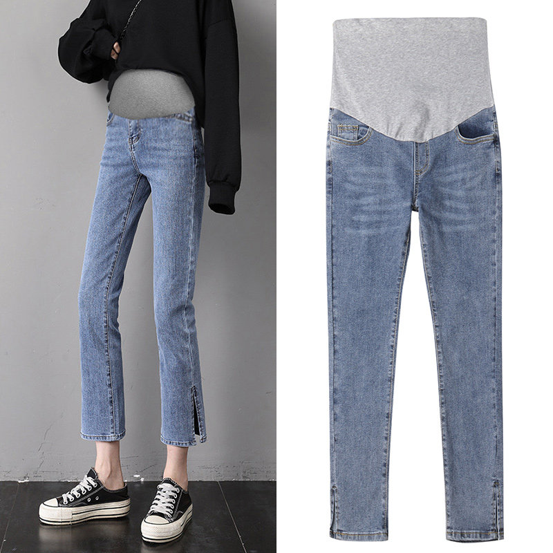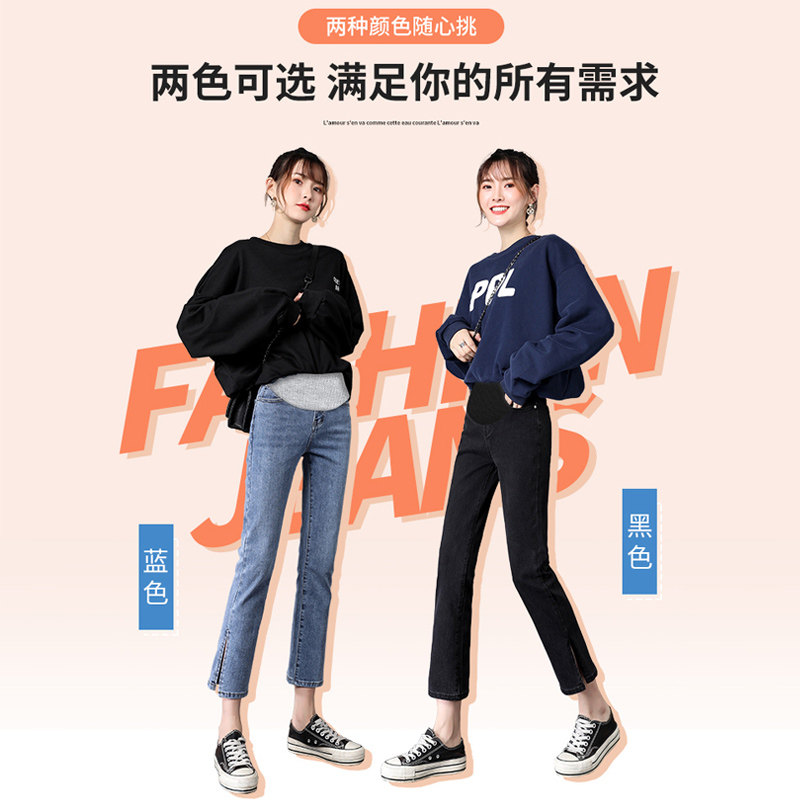 Pregnant women jeans in spring and autumn wear new high-waist belly resistant jeans fork casual straight trumpet pants