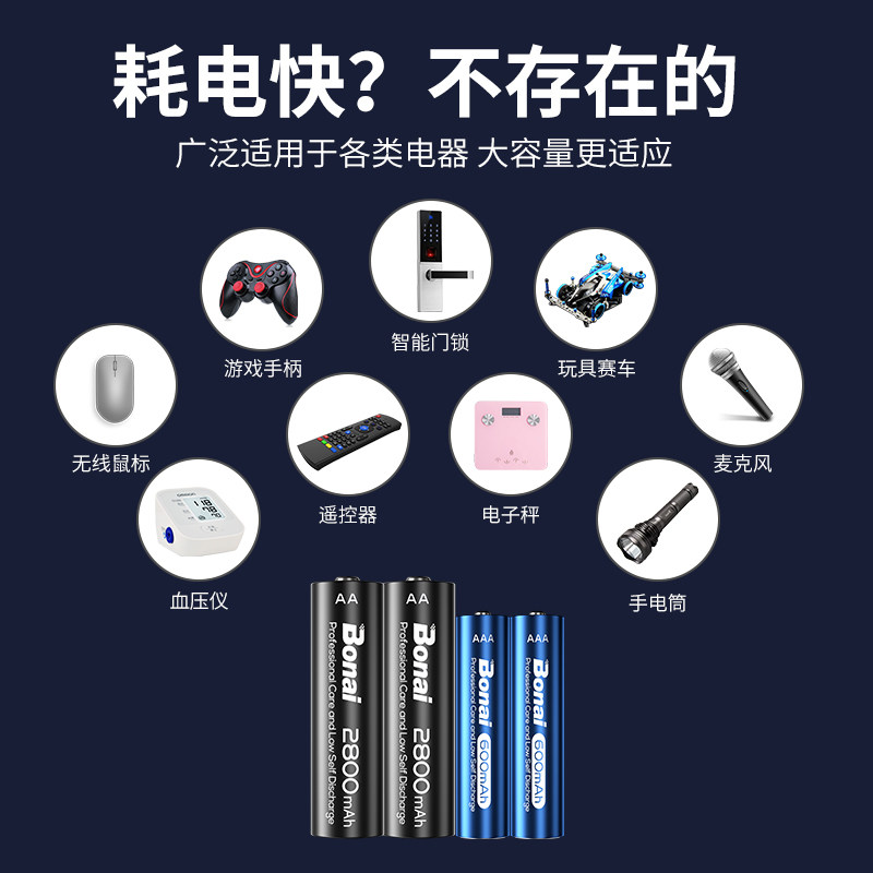 Bonai Charging Battery No. 5 Chargeable Toy Battery Microphone KTV Microphone Smart Door Lock Remote Control Vehicle 1 2v Intelligent Fast Charging Nickel Hydrogen Charger Set No. 5 Dry Battery