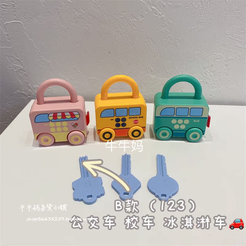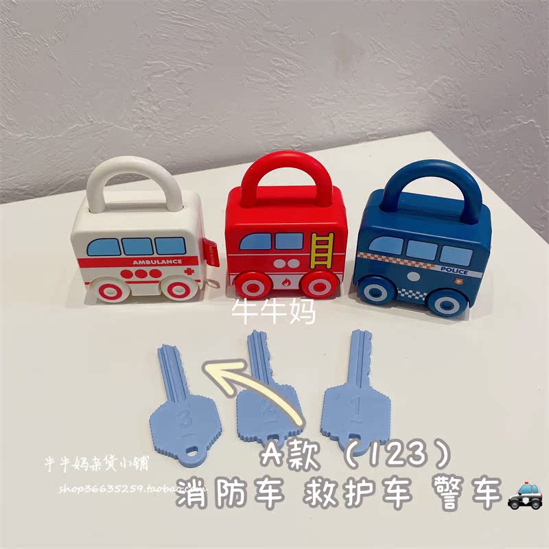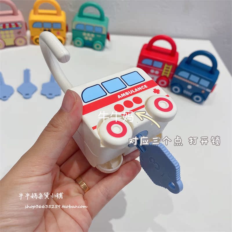Children Enlightenment Kindergarten Early Teaching Aids Puzzle Baby Key Unlock Pairing Toy Fire Truck Bus 1 1-3 years old
