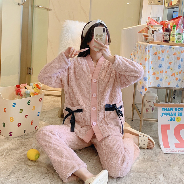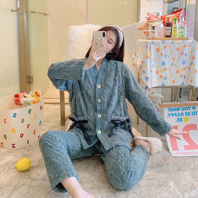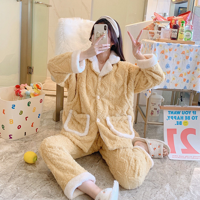 Coral fleece thickened pajamas women's flannel confinement clothing autumn and winter pregnant women breastfeeding warm large size home clothing set