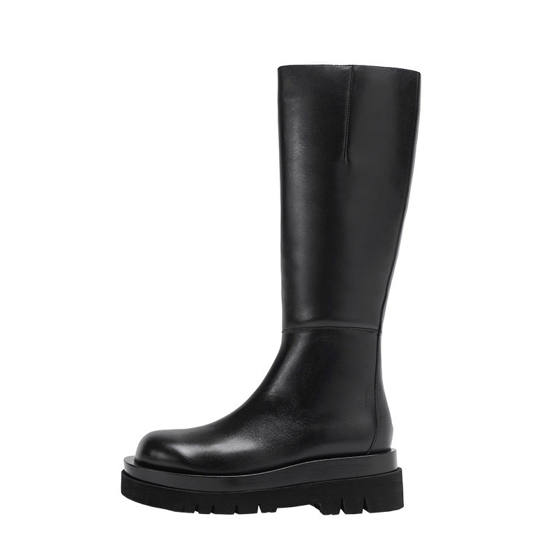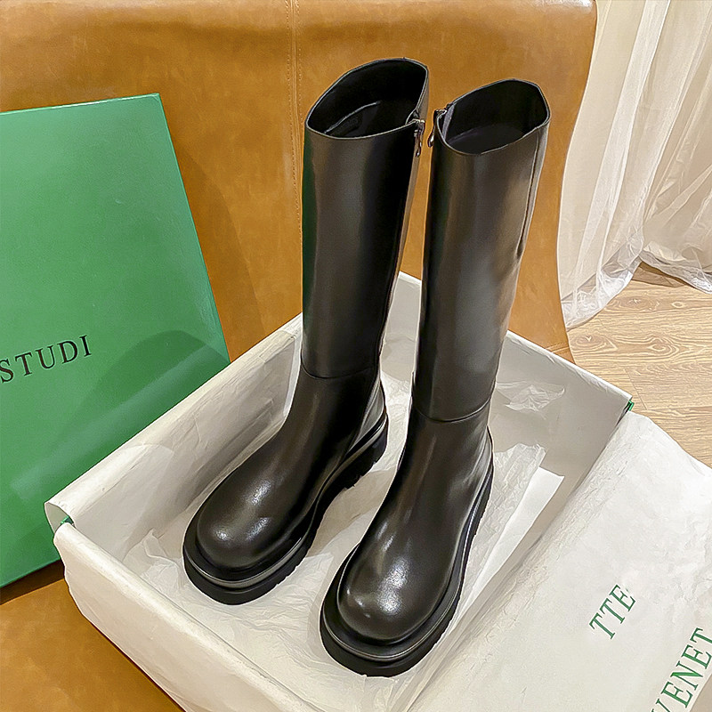 2022 new but in-knee heightening boots women's leather riding boots high tube slim and handsome black boots