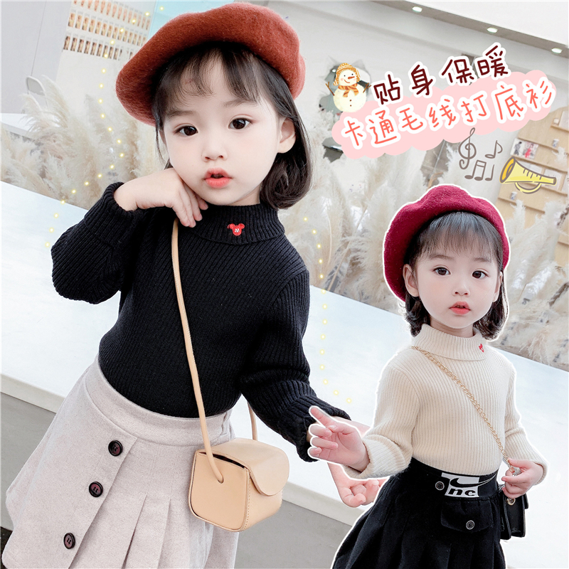 Girls sweater spring and autumn children's foreign style knitted top baby baby autumn dress high collar bottoming sweater autumn and winter