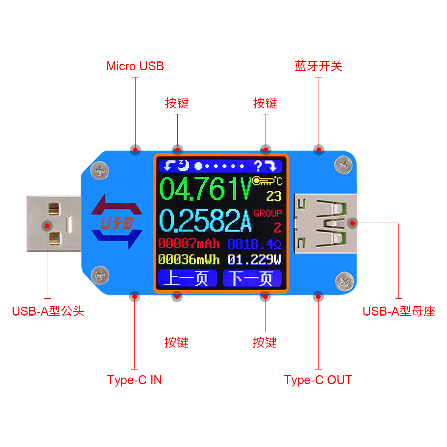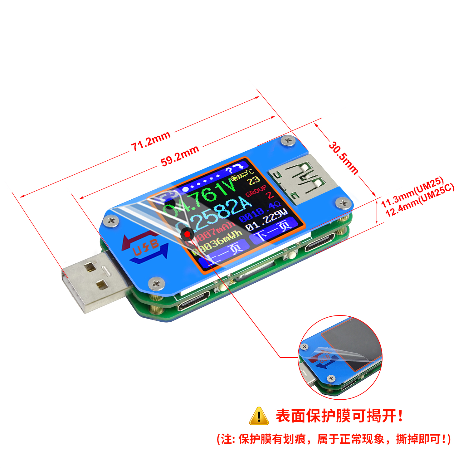 UM25C Android APP USB colour screen charging test monitor voltage current resistance Type-C detection table