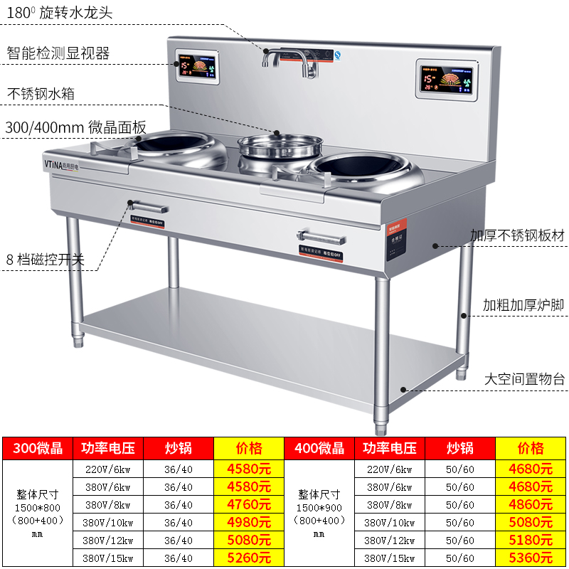 Light gray cabinet double stove 300 burner 150*80 with 40 wok cabinet double stove 400 burner 150*90 with 50 wok cabinet single stove 300 burner 100*80 with 4