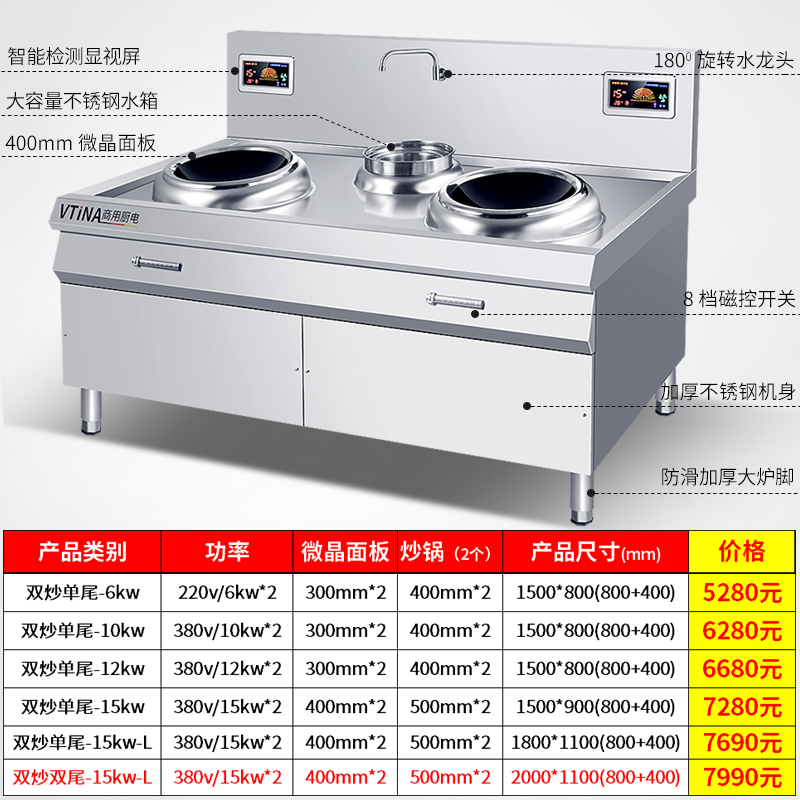 Commercial induction cooker high-power induction cooker 15kw double-head electric stove small frying stove hotel restaurant restaurant kitchen equipment