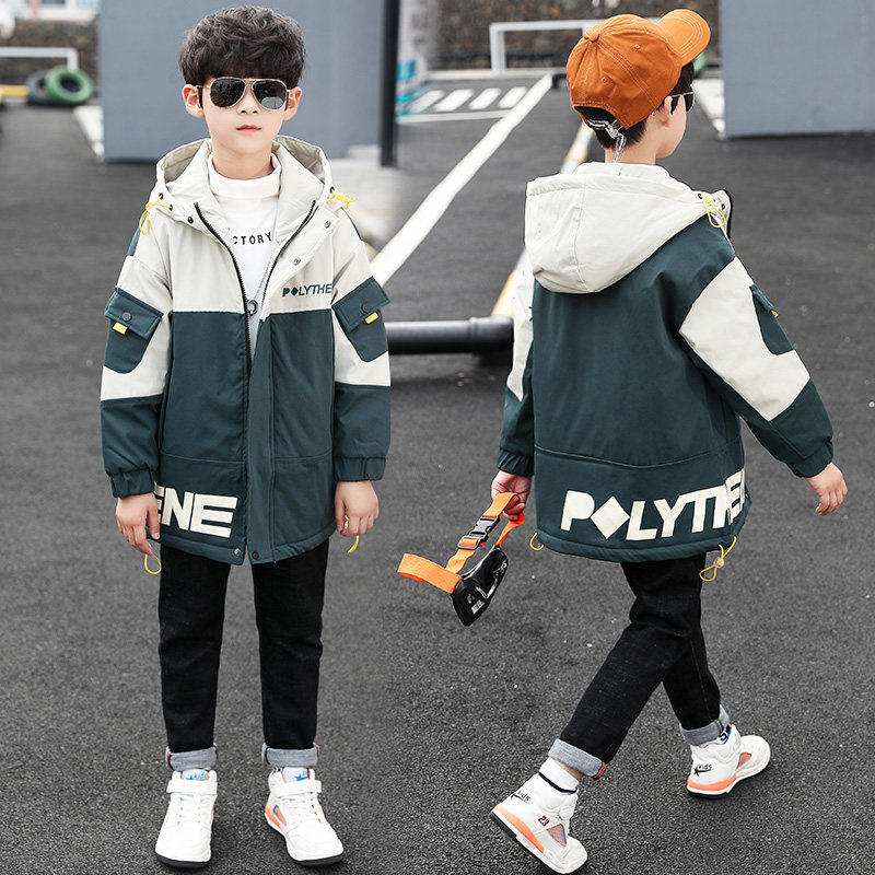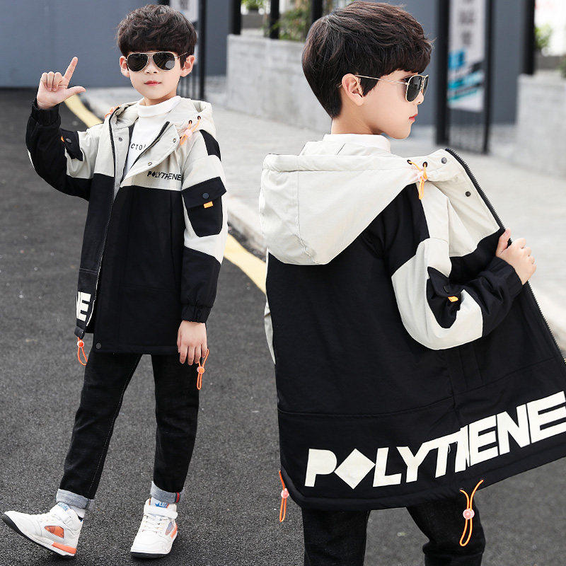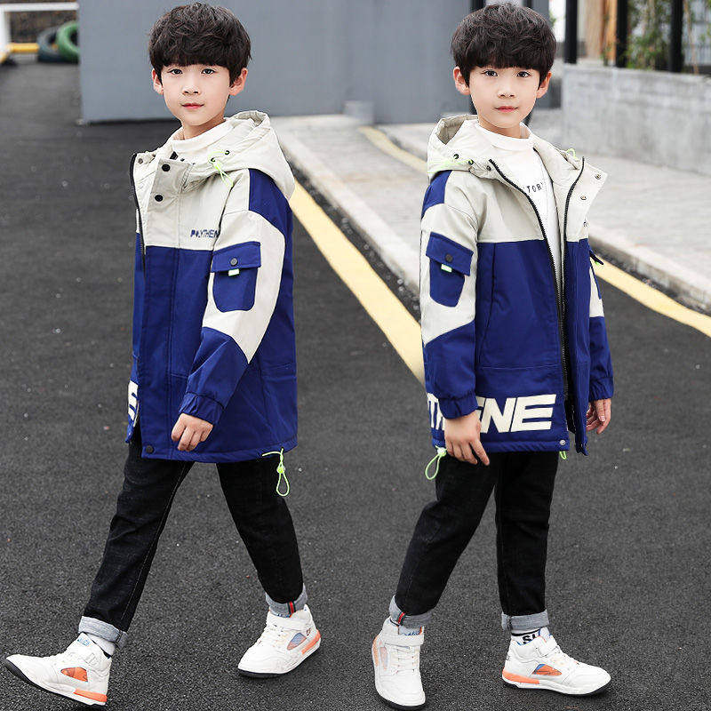 Boys Autumn Kids Set Jacket Jacket Tide Brand 2022 New Style Medium Big Boy Foreign Pie Fashion Handsome Boy Trench Coat