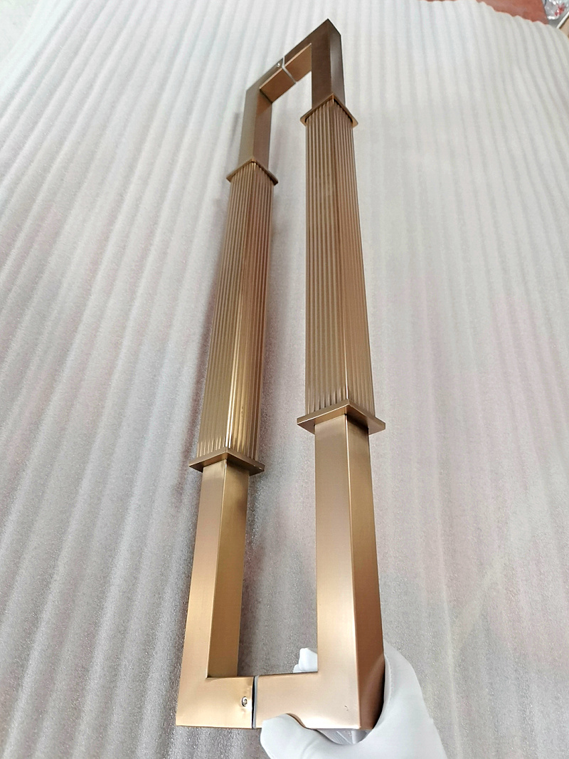 Stainless steel glass door handle light rose gold Chinese style hotel KTV door wooden door handle square tube villa handrail 6