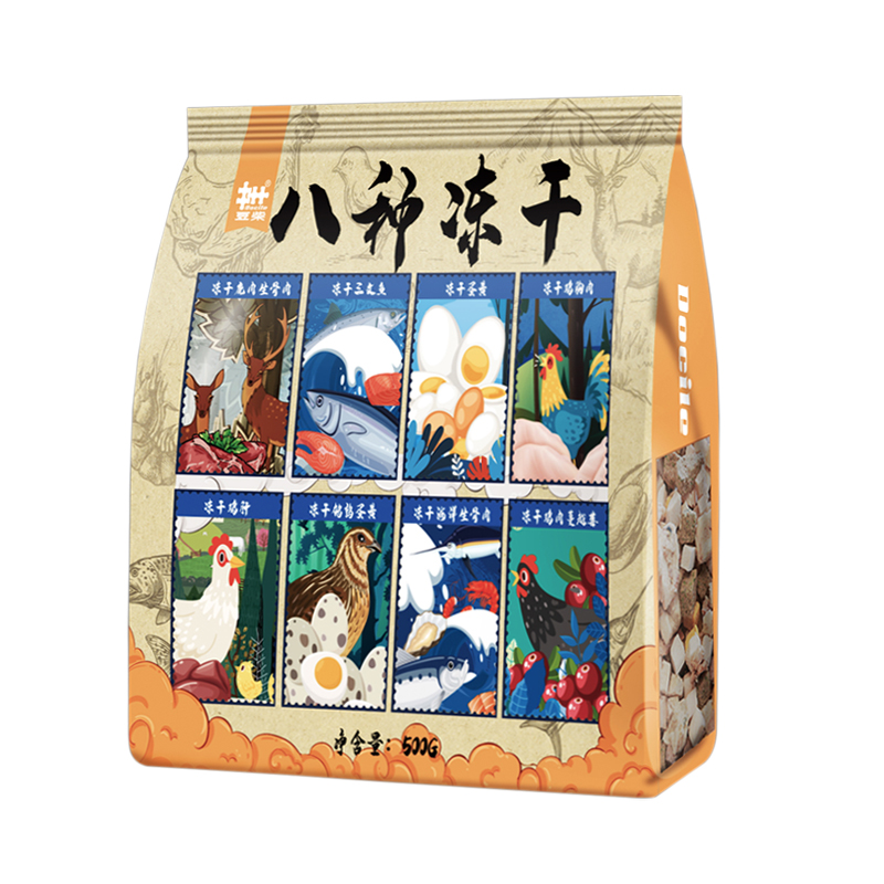 Bean chai Eight freeze-dried dog cats General snacks Egg Yolk Deer Meat Chicken Salmon Cranberry Meat Dry Freeze-dried 320g
