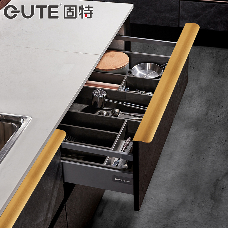 Solid invisible handle wardrobe free of punch integral cabinet modern minimalist drawers light and luxurious golden door handles lengthened black