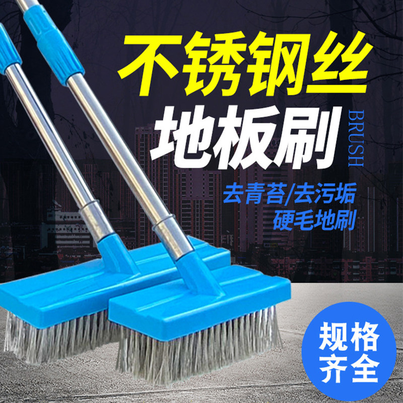 Brush Ground Brush Hard Hair Cement Ground Sweep Green Moss Stainless Steel Wire Long Handle Outdoor Patio Decontamination Outdoor cleaner