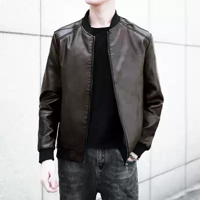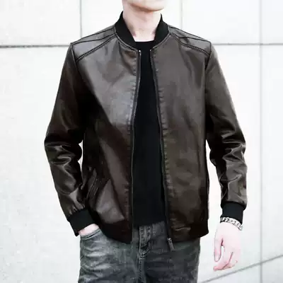 Autumn and winter leather jacket men's trend Slim Plus velvet thickening large size men's leather jacket motorcycle riding top