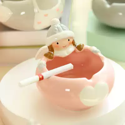 Living room ashtray creative personality trend home 2021 cute girl cartoon type gray jar ins