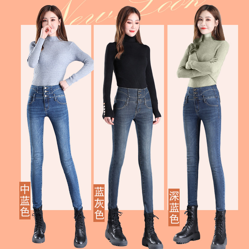 High - waist jeans woman 2021 new pencil repair appears high lean elasticity tight autumn and winter plus feet