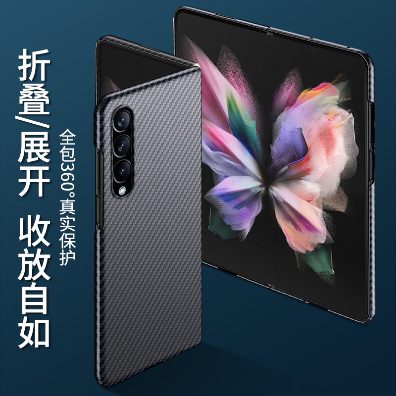 Samsung fold3 Zfold2 phone protection shell W22 W21Kevlar600D official protective sleeve Zfold3 lens full package carbon fiber ultra-thin anti-fall folding