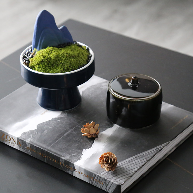 New Chinese emulated floral art fake book storage tank tea table combination suit swinging piece living-room table-like room adornment