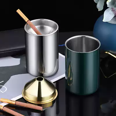 Stainless steel ashtray household with lid creative personality trend living room bedroom ins metal ashtray anti-flying ash