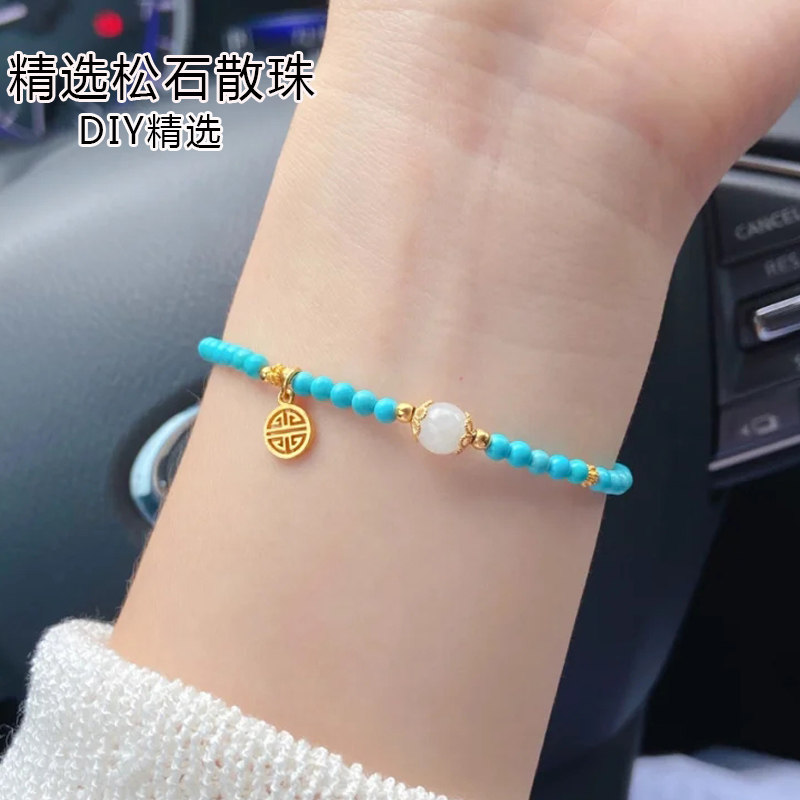 Turquoise loose beads small round beads mini handmade diy rice beads bracelet natural high porcelain hand-shaped round jade jewelry - Taobao
