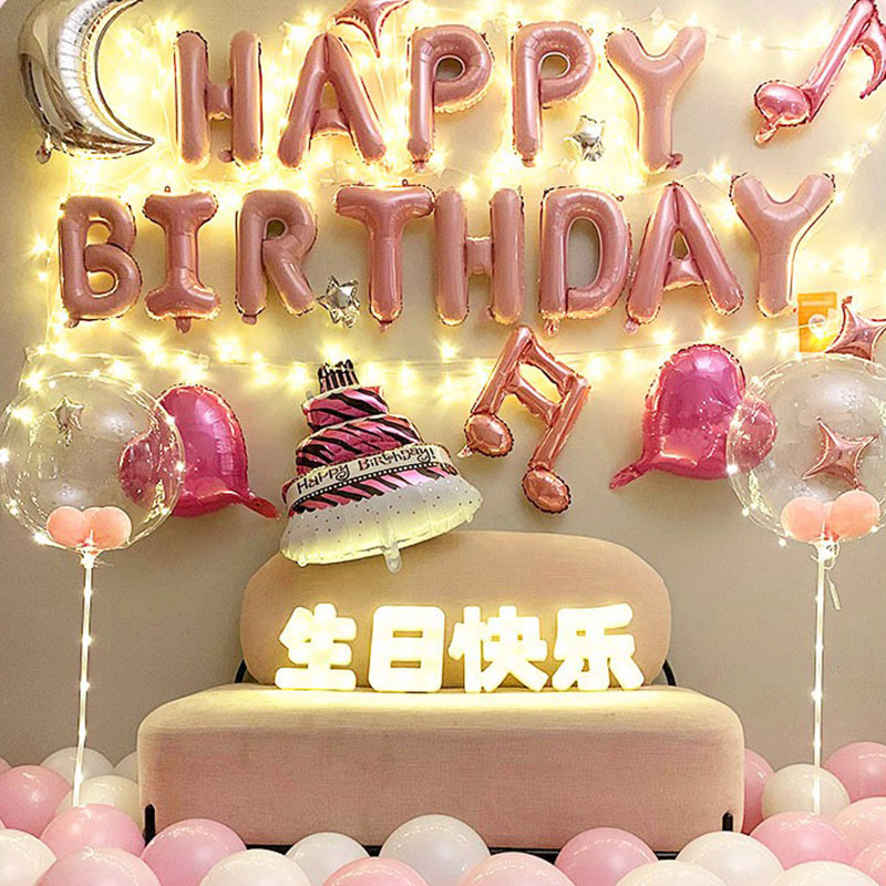 18-year-old Happy birthday Decorative Scene Ins Wind Goddess 30 Family Living Room Balloon arrangement Princess Girls