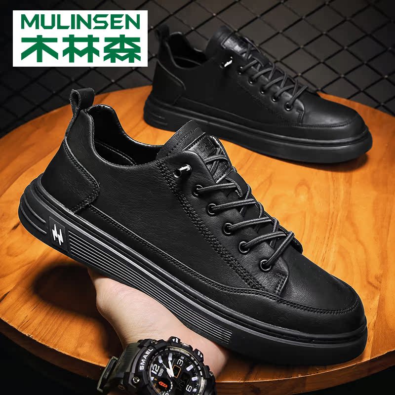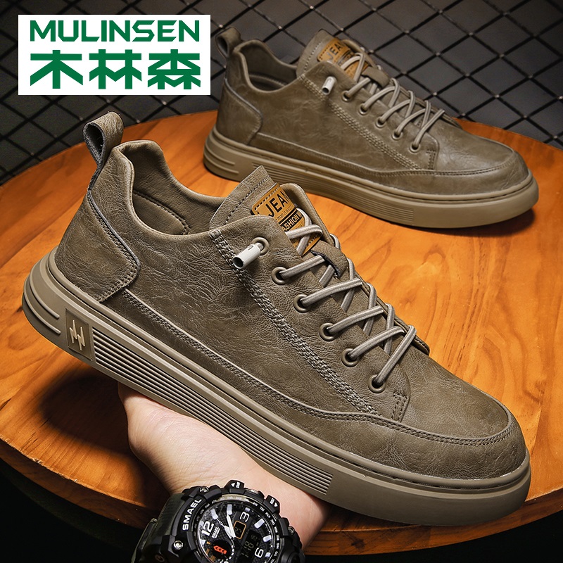 Mulinsen men's shoes spring and autumn British wind sneakers retro trendy shoes leather men's flat heightened casual leather shoes