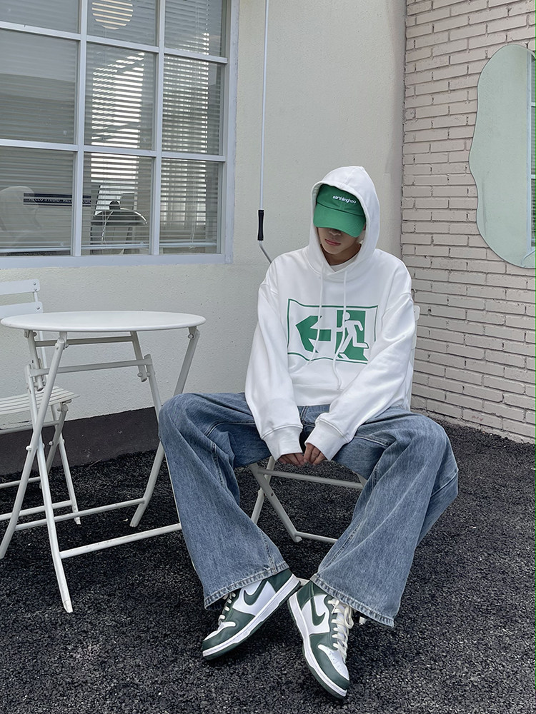 EAHO earthlinghoo original spoof safe export green and white street all-match plus velvet sweater for men and women