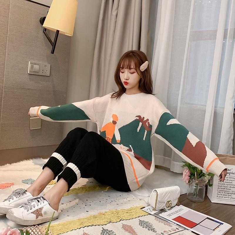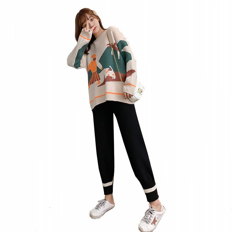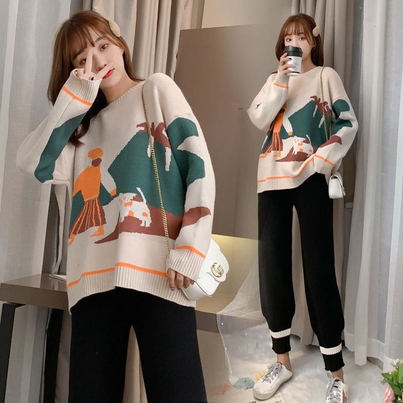 Pregnant women autumn suit fashion style 2021 new top spring and autumn net red loose knitted sweater two-piece trendy