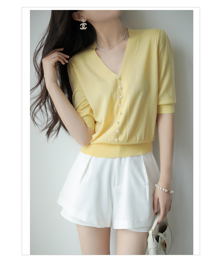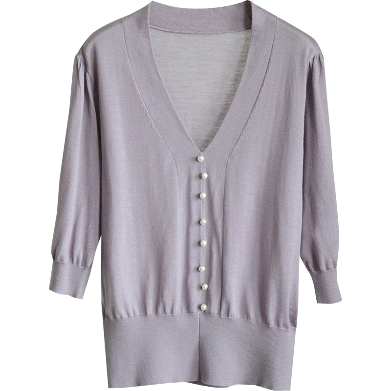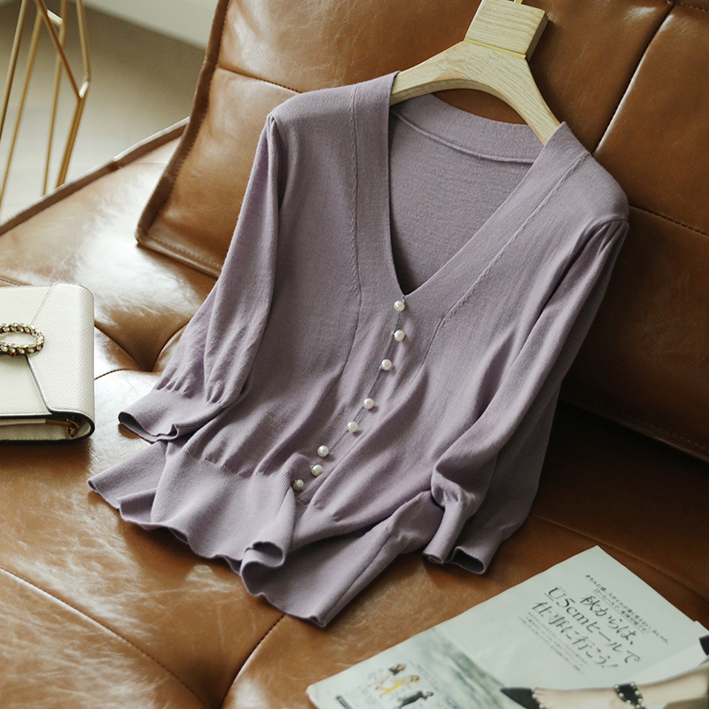Ice silk thin cotton knit cardiovert 2022 Spring new V collar loose 100 lap 50% Purple Knit Blouse Women