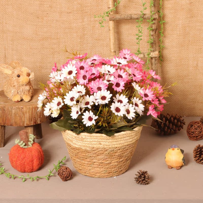 The daisy takes the flower purple 3 white 3 pure color grass basket daisy with pollen color 3 white 3 white side grass basket flower basket package C chick with deep purple 6 white side grass basket