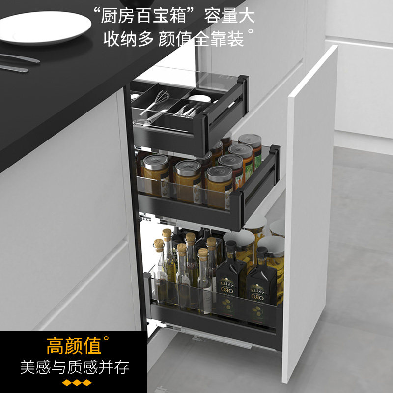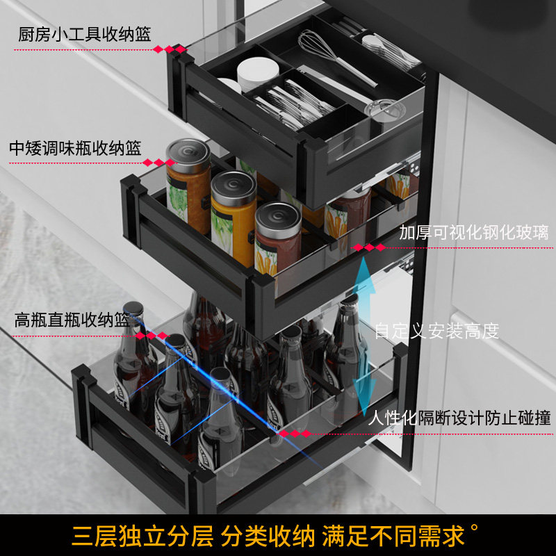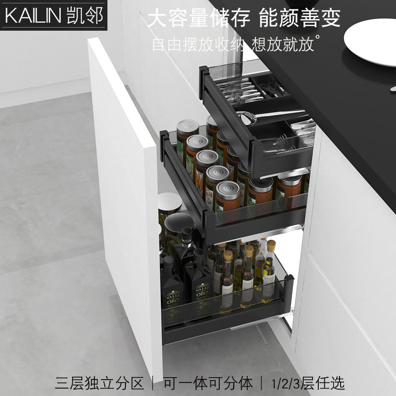 Kailin kitchen whole cabinet basket three-layer drawer type space aluminum seasoning seasoning pull basket tool double-layer pull basket transformation