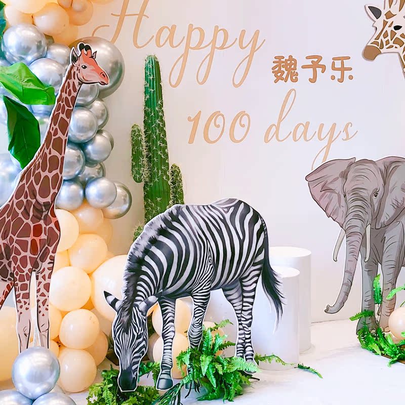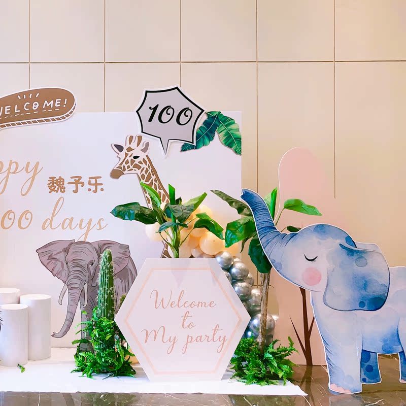 Children's boys and girls' birthday banquet Cartoon fresh-lined animal balloon layout decorative background