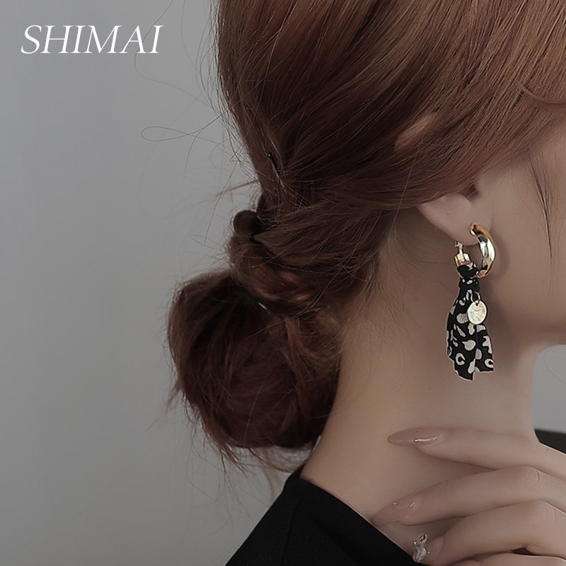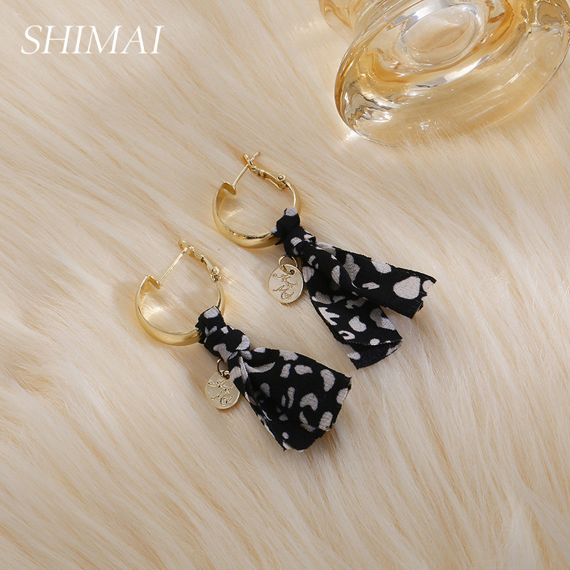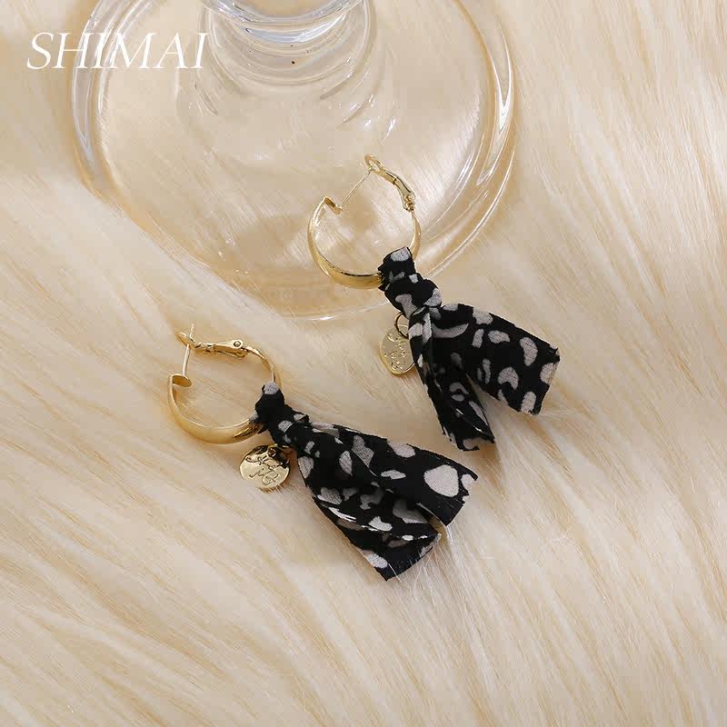Black cloth art Earrings 2021 New wave personality temperament Long version ear button French style retro design Sensation Ear Pendant Woman