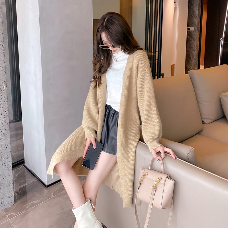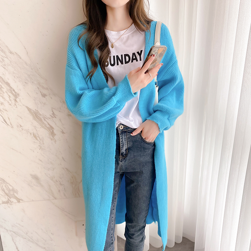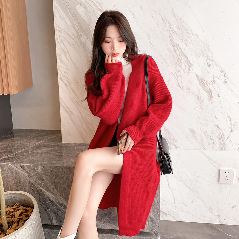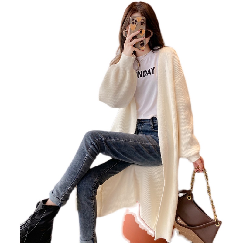 Net red medium long version knit cardiovert 2021 autumn winter new lazy wind thickened outside wearing loose sweater jacket woman