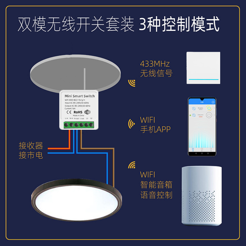 MINI Graffiti Intelligent 16AWiFi Switch Module Single Control Double Cut Adaptation Sky Cat Genre Small Degree Voice Control