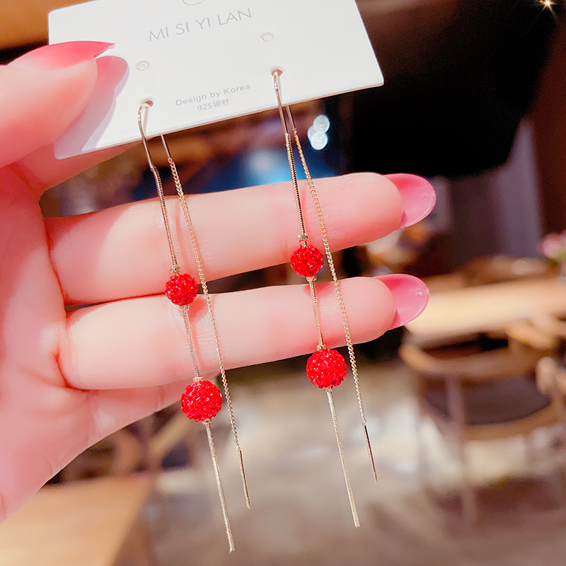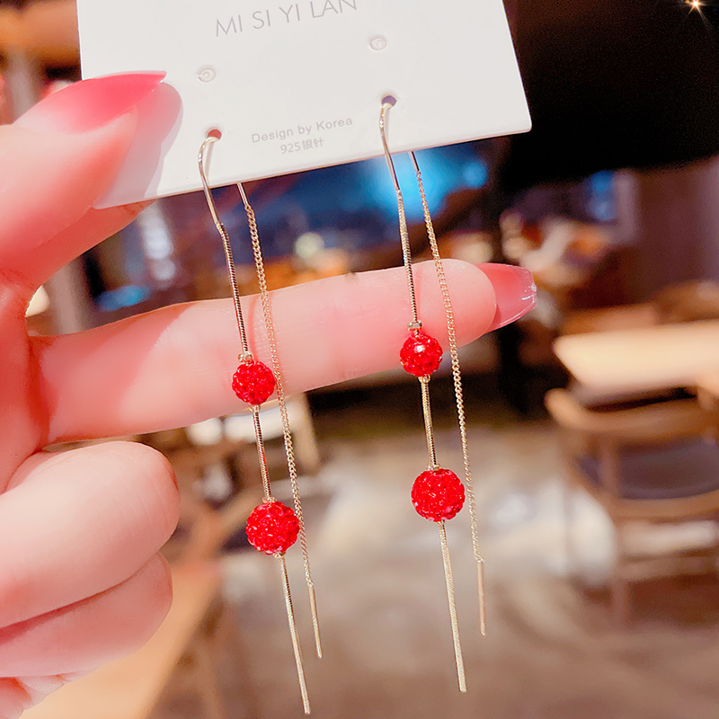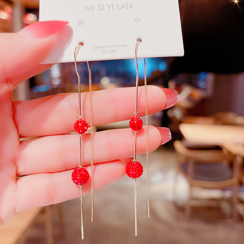 Design Sense Autumn Winter Red Full Drill Ball Ear Necklace Earrings 2022 New Tide version Temperament Fluttering woman