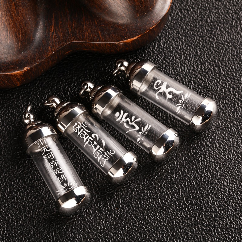ZN-41 double round transparent bottle silver color blank ZN-41 double round transparent bottle silver six words true ZN-41 double round transparent bottle silver charm mantra ZN-41 double round through