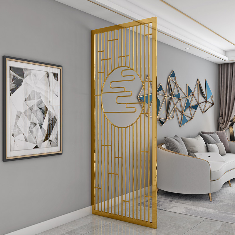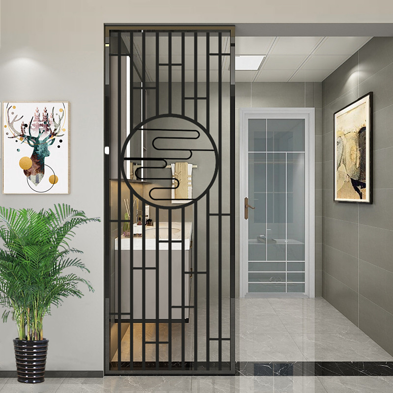 Custom stainless steel screen new Chinese style porch entrance living room metal partition simple modern grille titanium decoration