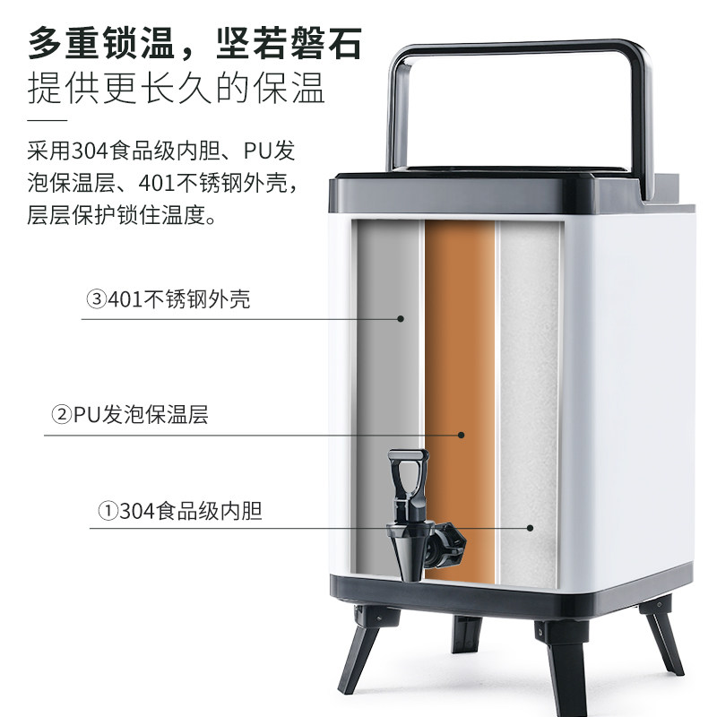 Tangya commercial stainless steel thermal insulation double-layer cold drink tea coffee large-capacity milk tea shop special square milk tea bucket