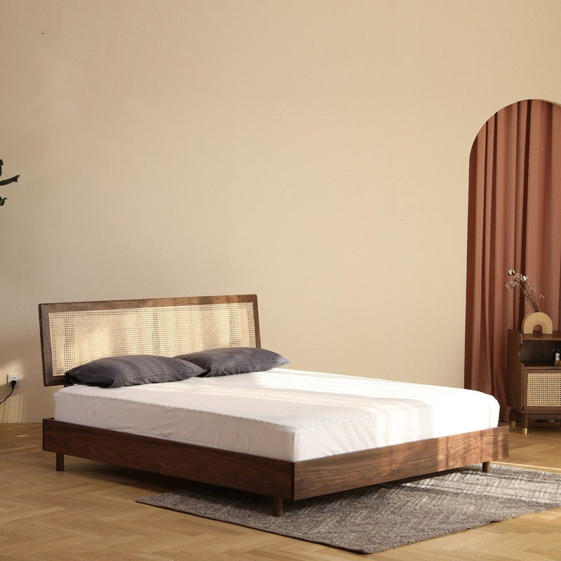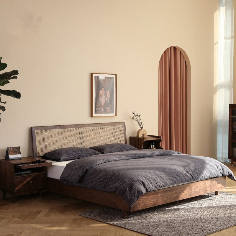 Modern minimal black walnut vine wooden beds Nordic Japanese bedroom 1 8 m cherry wooden wooden double bed