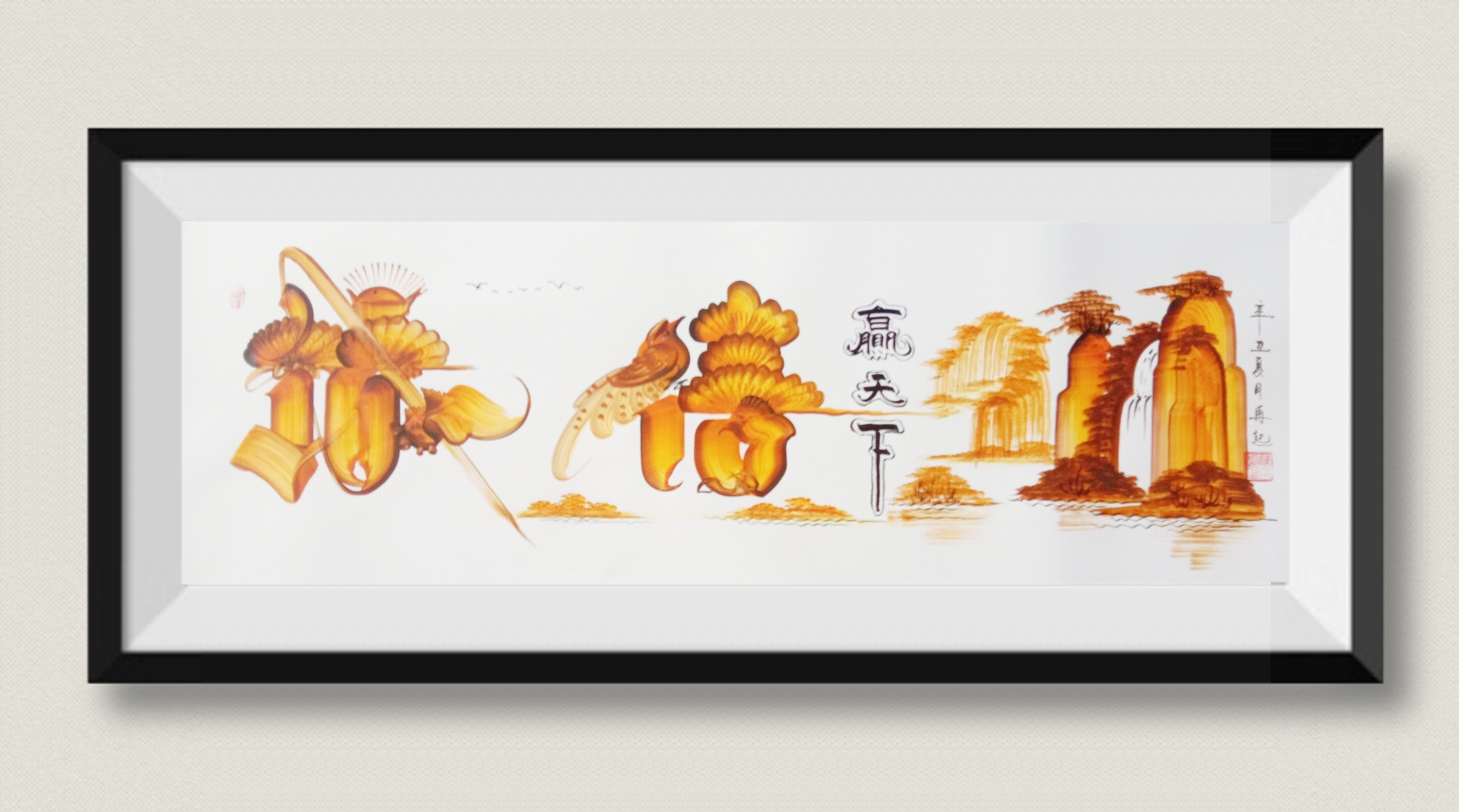 Simple antique stereo plate pen Chen Guocai hand-painted color characters name painting intangible heritage traditional national quintessence solid wood frame