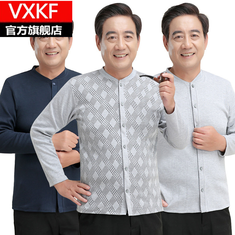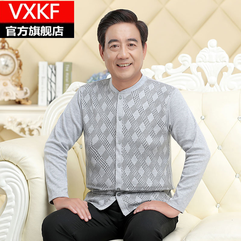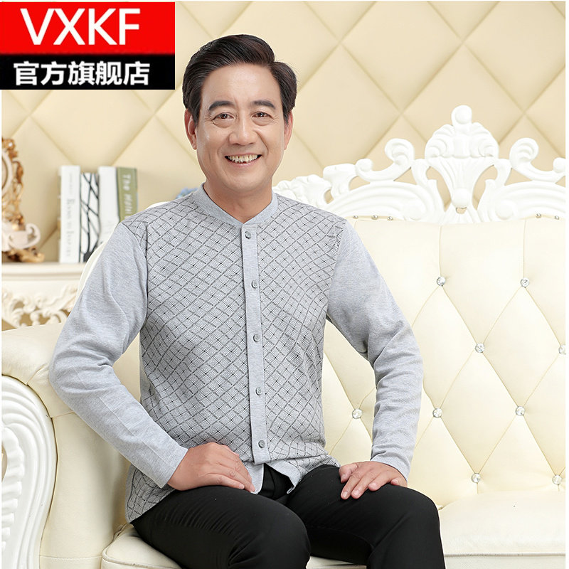 Middle Aged Cardiovert Jersey Men's Tie Button Pure Cotton Single Piece Blouse Heating Coat Large Size Size Seniors Cotton Sweatshirt Male
