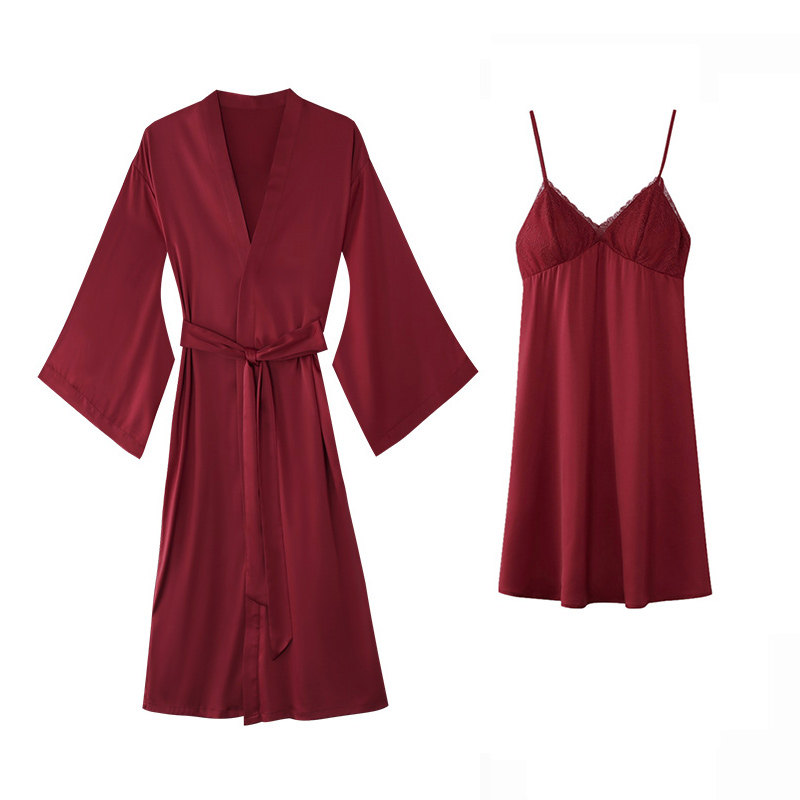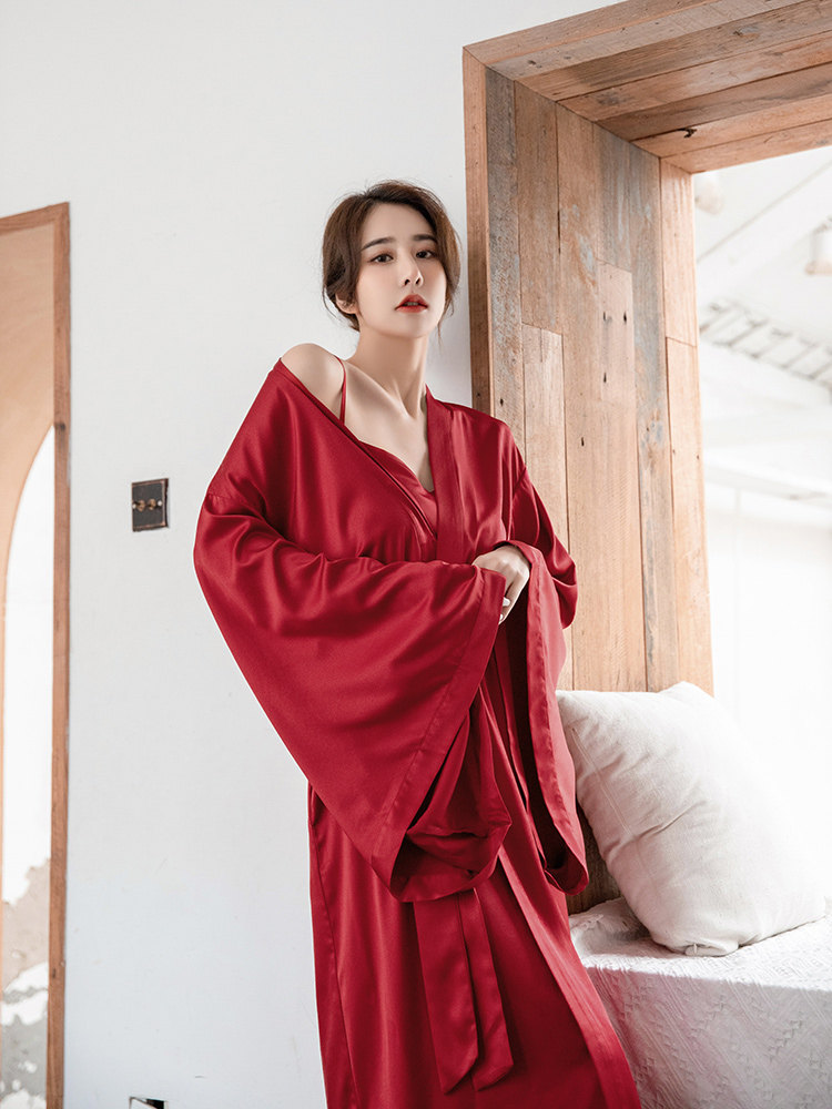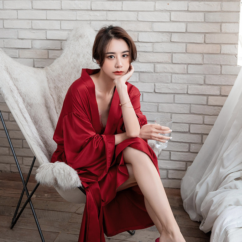 Sexy long sleeve two pieces of home goddess and dress gown with chest cushion hoisting sleepy dress bride dress robe