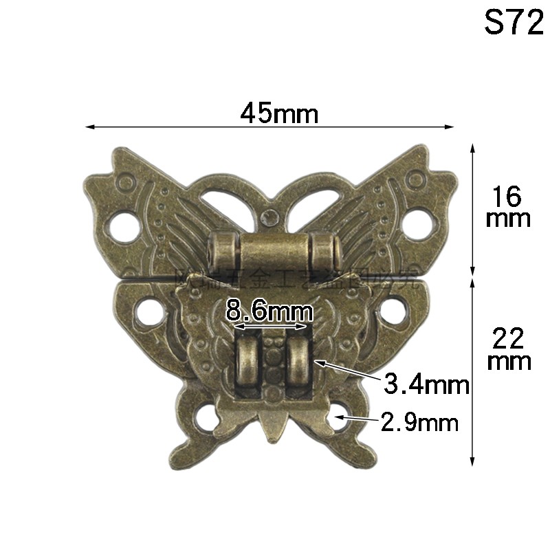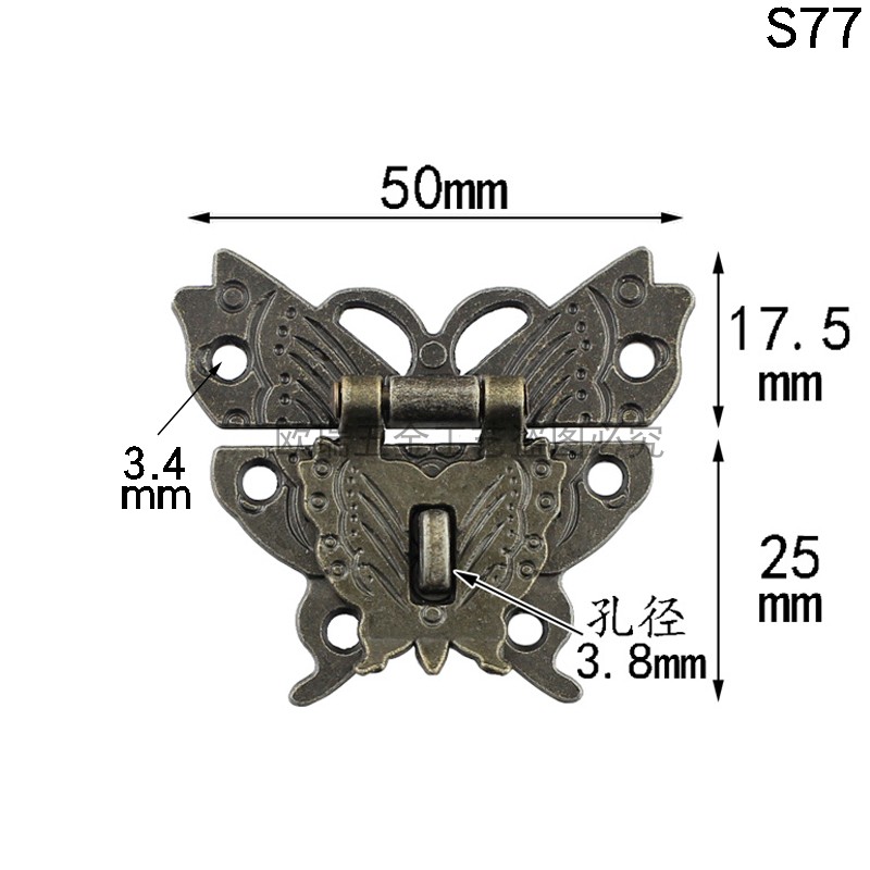 Gift box panel retro butterfly small buckle alloy lock iron box buckle wooden box wooden box packaging buckle can be padlocked