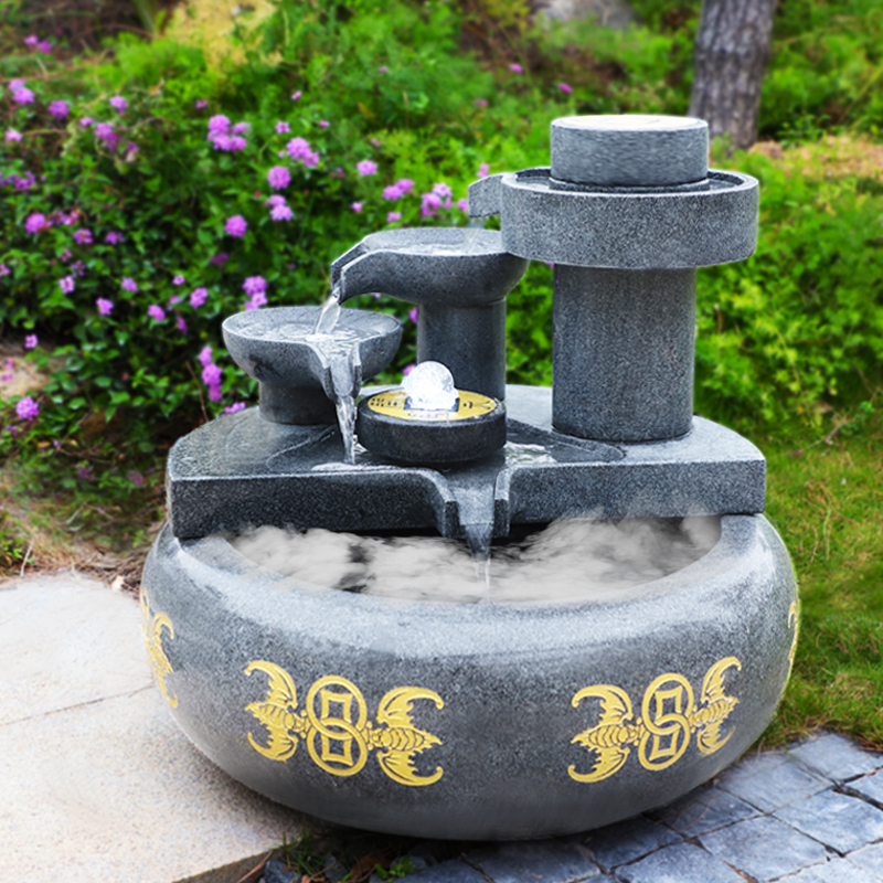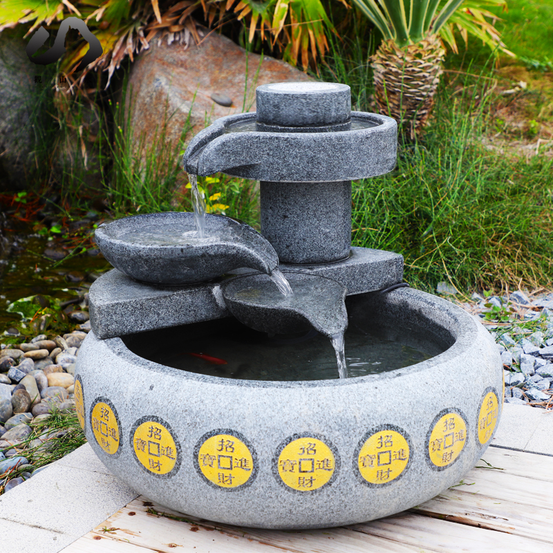 Bill of Finance Flowing Water Swing Piece Circular Water Fish Cylinder Landscape Home Living Room Xuanguan Decorative Courtyard Landscaped Landing and Swaying Pieces